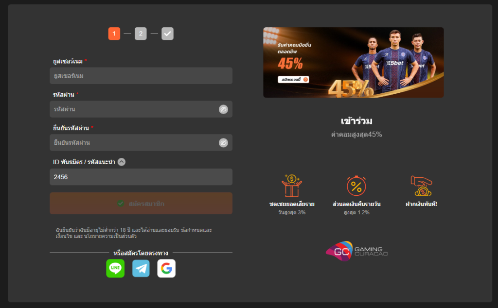เพื่อเริ่มต้นสัมผัสประสบการณ์การเดิมพันกับ x5bet สิ่งแรกที่คุณต้องทำคือลงทะเบียนบัญชี ขั้นตอนการลงทะเบียนที่ x5bet นั้นง่ายและรวดเร็ว ช่วยให้คุณเข้าร่วมชุมชนการเดิมพันออนไลน์ของเจ้ามือรับพนันรายนี้ได้อย่างรวดเร็ว ด้านล่างนี้คือคำแนะนำโดยละเอียดเกี่ยวกับวิธีการลงทะเบียนบัญชีที่ x5bet