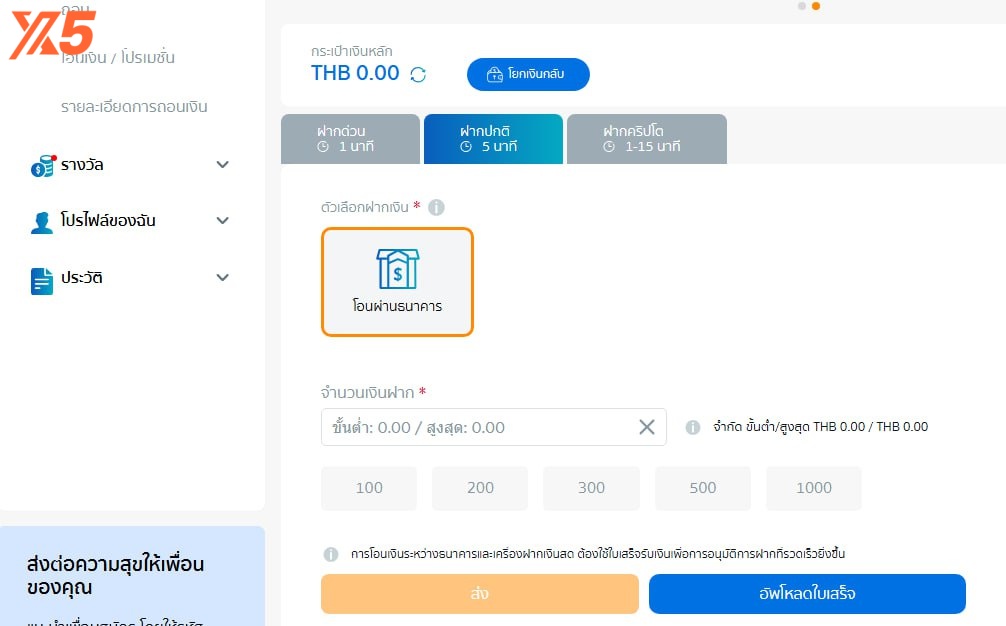 วิธีฝากเงินที่ x5bet โดยการโอนเงินผ่านธนาคาร